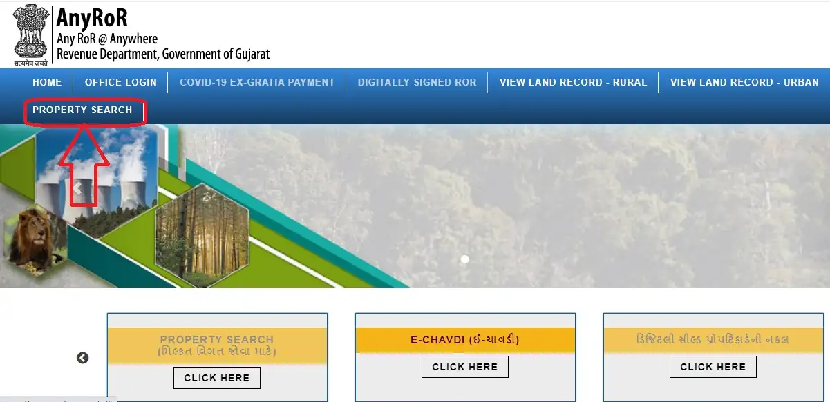 Visit the official AnyRoR Gujarat portal: anyror.gujarat.gov.in