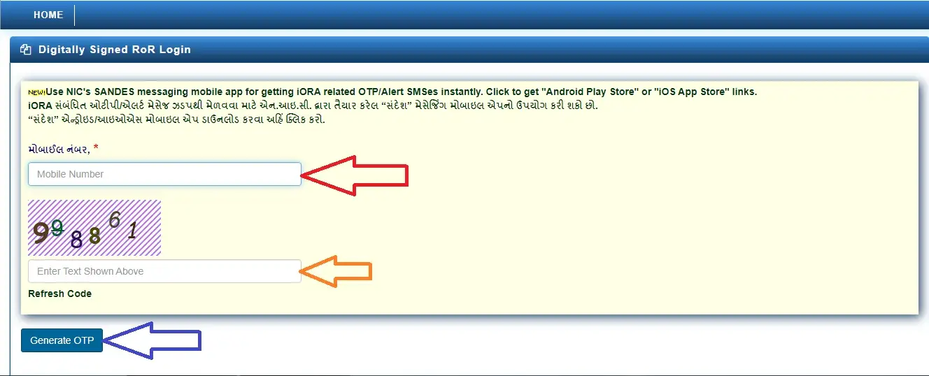 Enter your Mobile Number and Captcha Code, then click "Generate OTP".